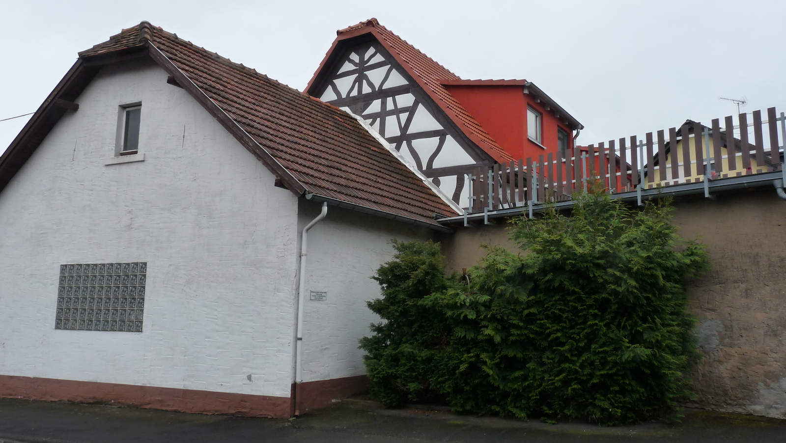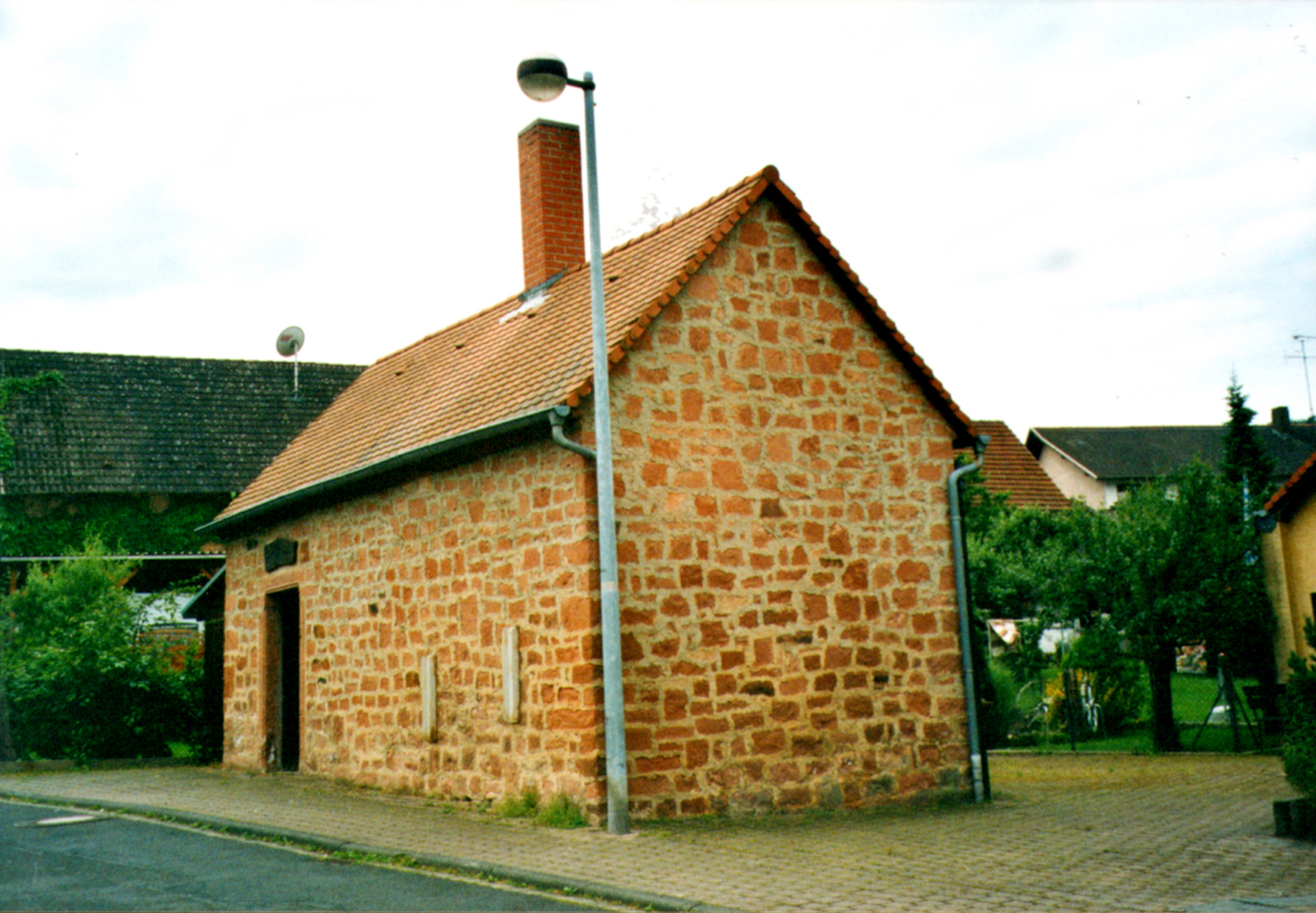 | Backhaus im traditionellem Stil, inschriftlich datiert auf 1936, Mauerwerk, Tür- und Fenstergewände aus Sandstein, Satteldach. Bild links 2002, Bild rechts 2021 | |